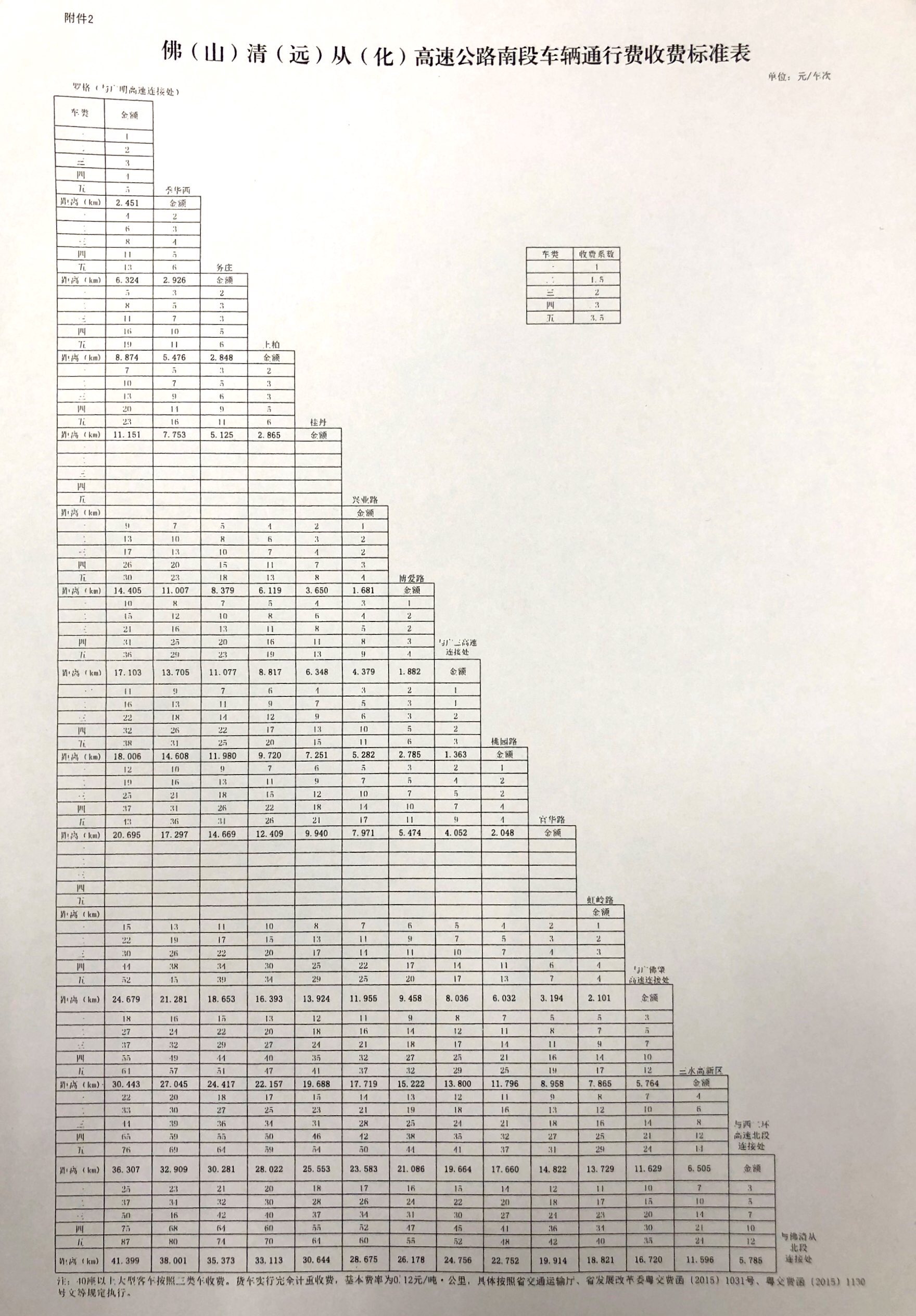 ? ? ? ? ? 2.佛(山)清(遠(yuǎn))從(化)高速公路南段車(chē)輛通行費(fèi)收費(fèi)標(biāo)準(zhǔn)表