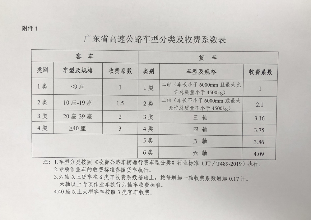 附件:1.廣東省高速公路車型分類及收費(fèi)系數(shù)表
